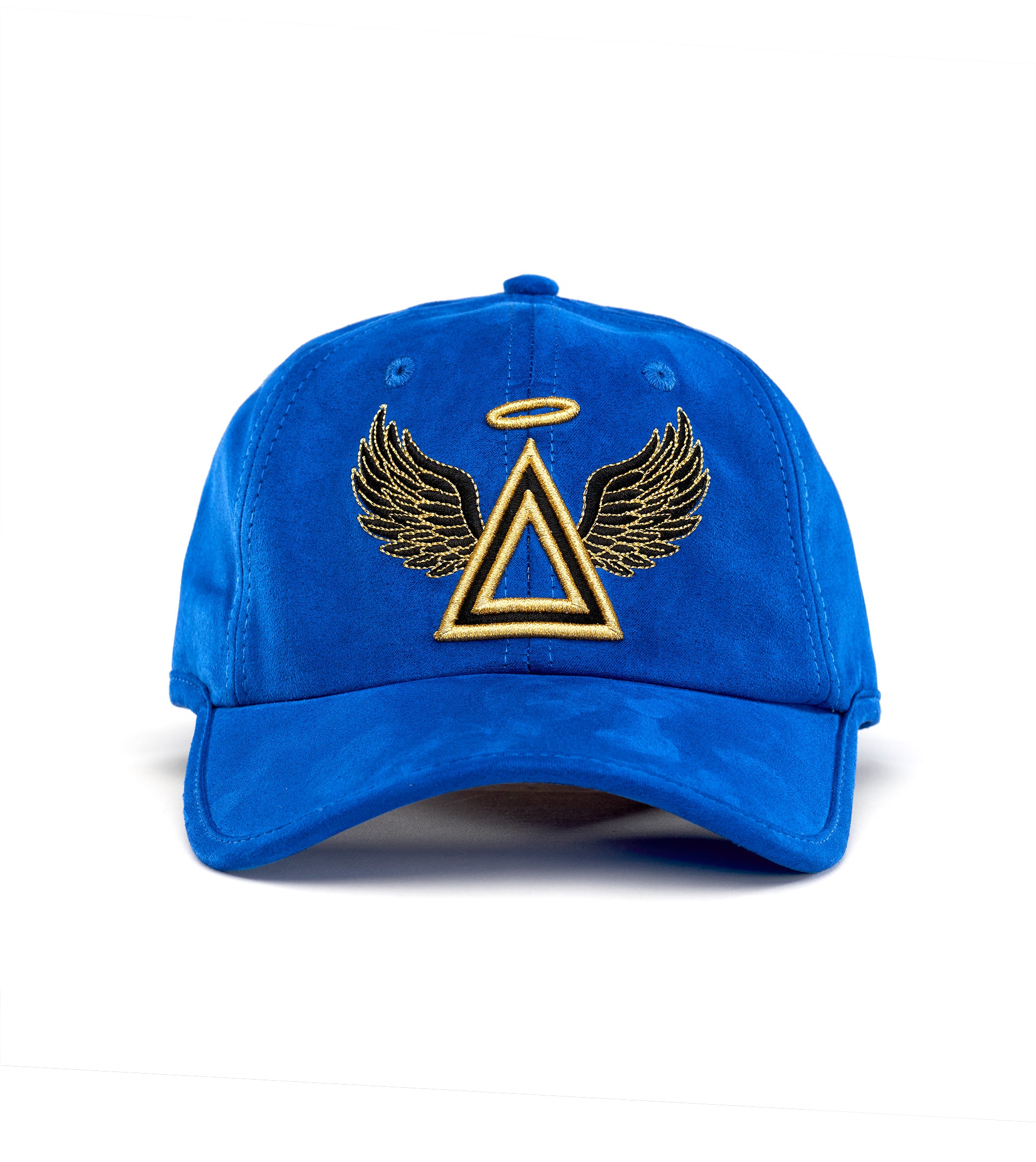 Unstructured Suede DAD HAT is distinguished with Trianguloswag's signature embroidered Logo with a ANGELS remix at front, back & sides. Adjustable back strap Embroidered ventilating grommets, Royal Blue Suede, Gold embroidery & Satin Lining with angels Art.