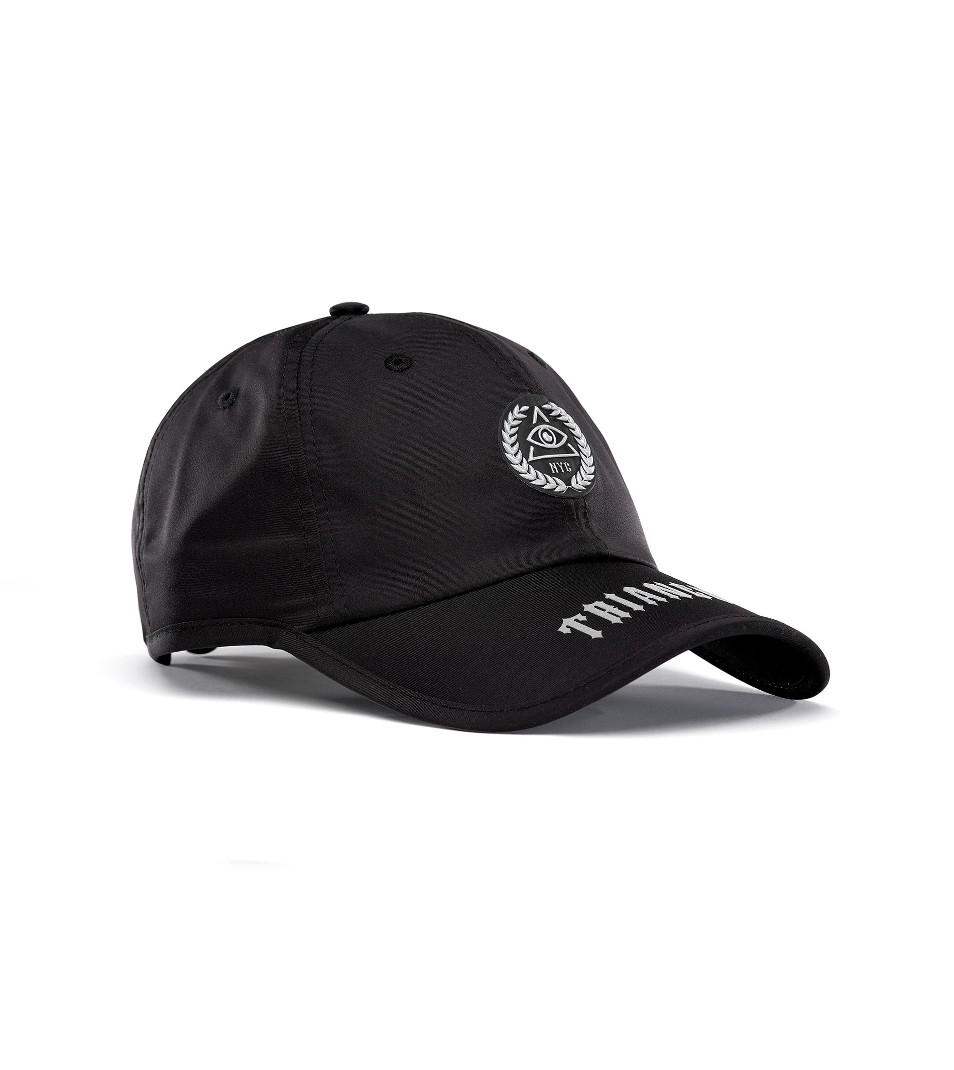 this classic baseball cap in durable Nylon is distinguished with Trianguloswag's Reflective Silicone patch front logo, embroidered Logo back & Reflective Brim logo with Adjustable back strap