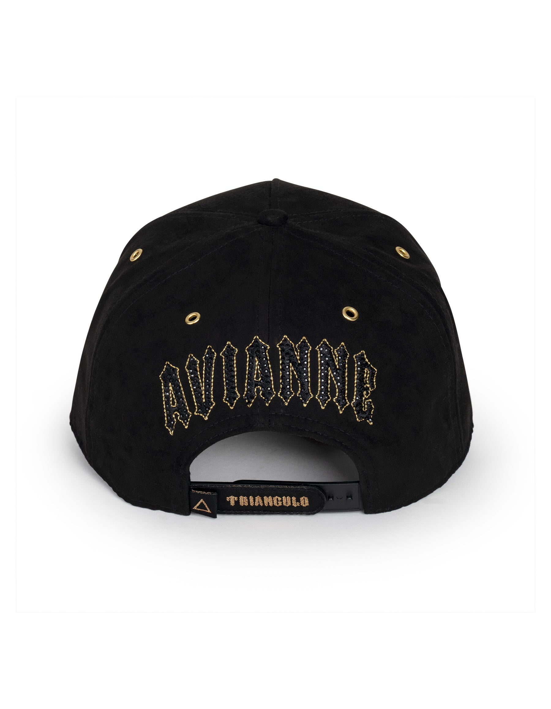 In a groundbreaking collaboration, Triangulo, the urban hat brand revered in the Latin rap scene, and Avianne & Co, the prestigious New York-based jeweler, unveil a hat that is the epitome of luxury streetwear. This masterpiece features a high-quality suede crown complemented by a sturdy leather brim, exuding sophistication. Inside, the wearer is treated to a silk print lining, adding an unseen layer of extravagance. The front of the hat proudly displays a gold-plated stainless steel Triangulo logo, intricately studded with sparkling stones, making a bold statement. Similarly, the back of the hat features an equally stunning design, adorned with black rhinestones, ensuring allure from every angle. The inclusion of Avianne's signature jewel embellishments throughout elevates this piece into a dazzling symbol of fashion. This hat transcends mere headwear, representing a perfect blend of urban edge and exquisite craftsmanship, tailor-made for those at the forefront of street style and luxury fashion.
